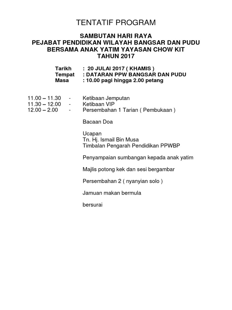Tentatif Program Hari Raya Jpm Pdf